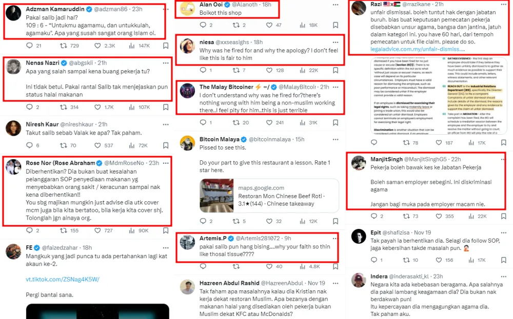 However, not everyone was happy with the outcome. Twitter netizens especially were quick to question the decision. “Wearing a cross is an issue now?” one asked. Another said: “This isn’t right. Wearing a cross does not affect the halal status of the food.” Several also claimed the decision was “unfair” to the worker and questioned the connection between wearing a cross at a halal eatery.
