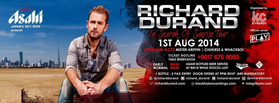 With a successful career on the go, Durand makes for one of the most demanded DJs worldwide and thanks to our friends at Asahi Super Dry, Richard Durand will kick start the party this August at Play Club @ The Roof on Friday.