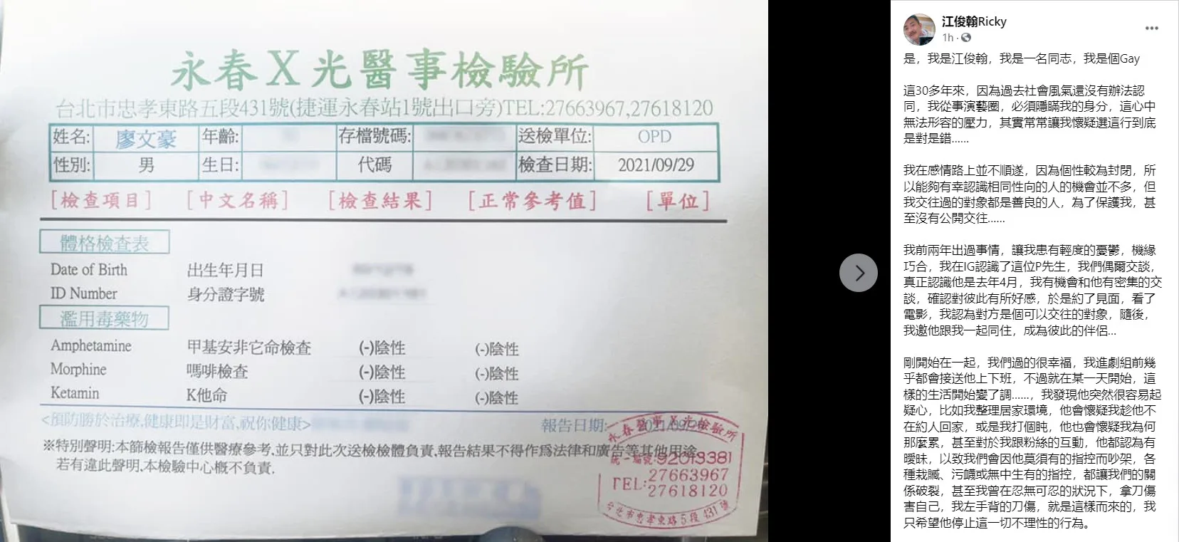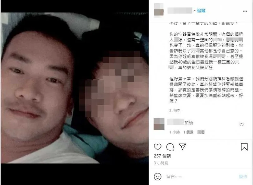 A man claiming to be Ricky’s boyfriend shared the story of his relationship with the actor on IG. It was not a happy one. The man stated he’d met Ricky in April last year (2020) and hit off really well. However, things soon turned sour when Ricky’s friend got him into using amphetamine again mid-year. “Jiang Junhan urged me to use (amphetamine) to enhance our sex and help us make love,” he said. “You even asked me to use an app to arrange for group sex.”