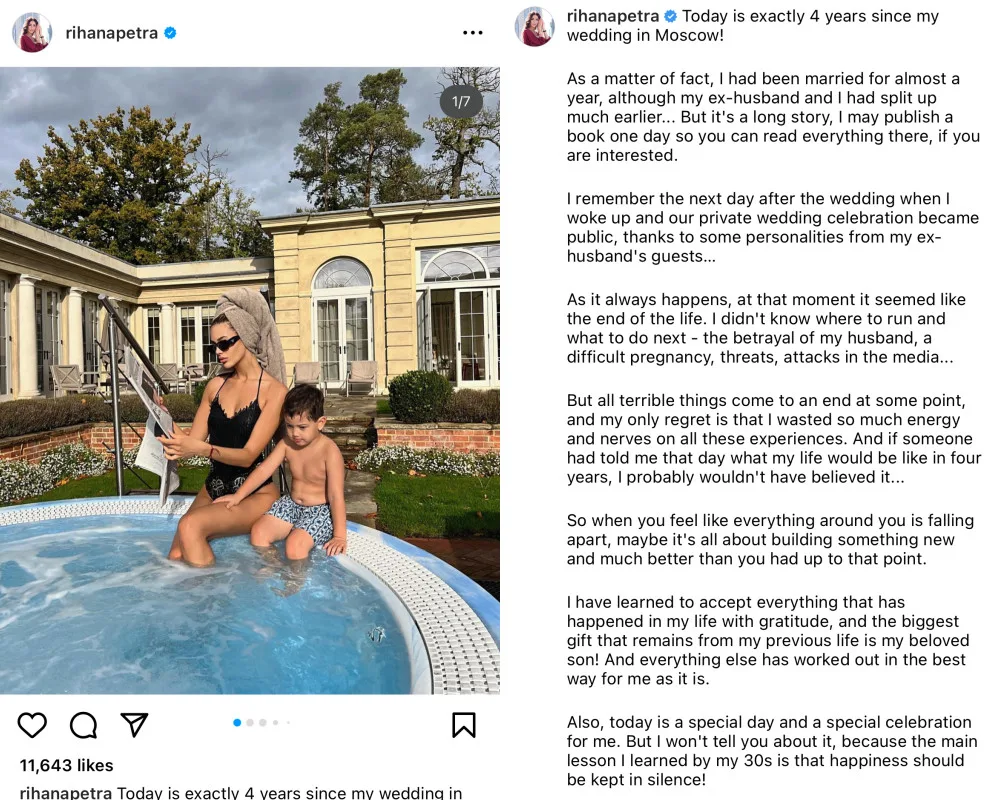 In the Instagram post, the Russian model talked about her bad experiences during the brief marriage, including a claim saying that her ex-husband had apparently betrayed her – to the point where she did not know what to do or where to go. She also mentioned that she may publish a book someday about the betrayal.