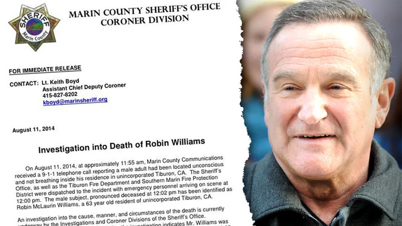 However, that very same day, his personal assistant enter the room when he failed to respond to knocks on his bedroom door. Robin Williams was found dead in a seated position with a belt around his neck (with the other end of the belt wedged between the clothes closet door and the door frame) and slight wounds to his wrist. The police refused to say whether a suicide note was found, but it was disclosed that a pocket knife with signs of dried blood on its blade was being examined.