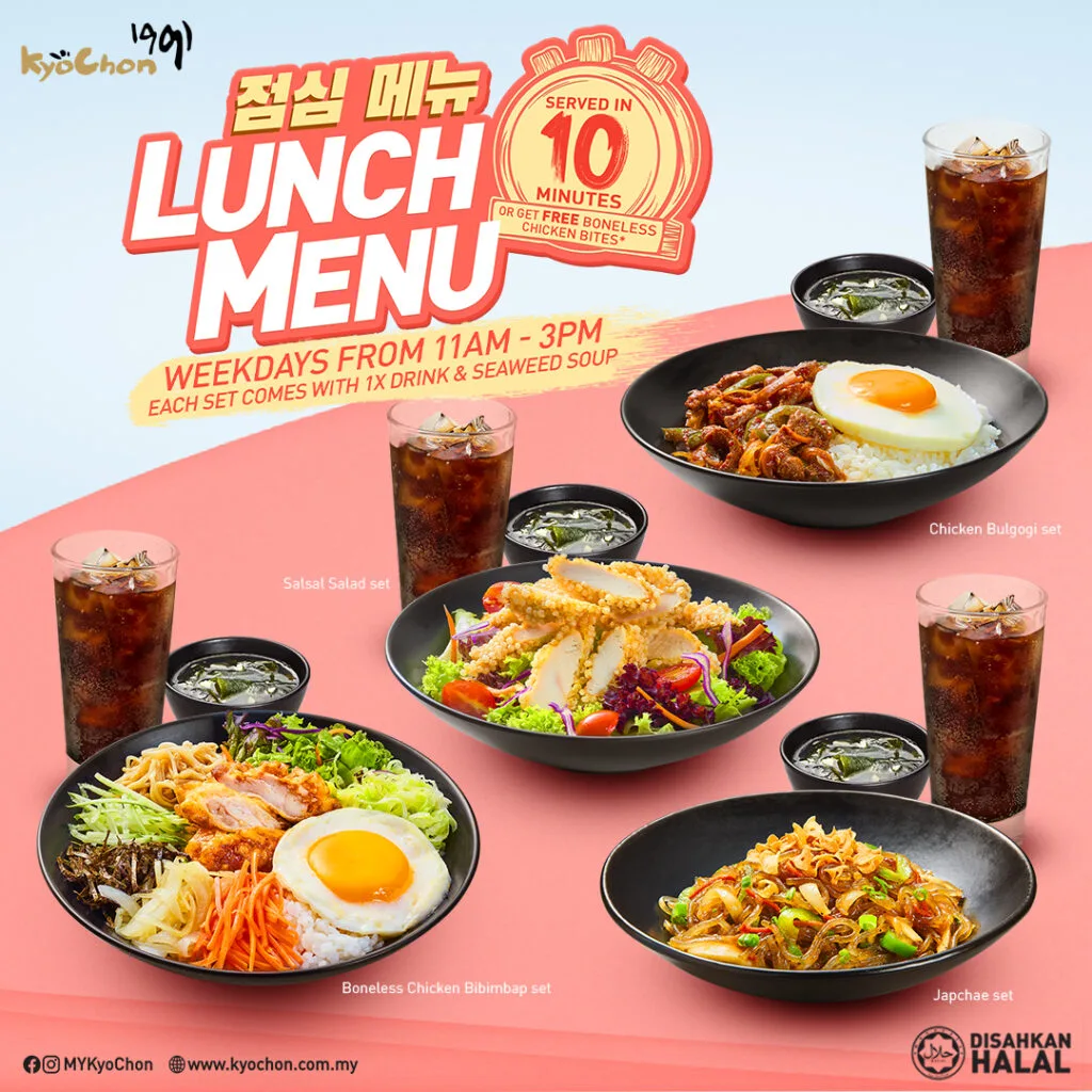 KyoChon 1991 is offering the mouth-watering lunch menu at a few prime locations, including The Gardens Mall, IOI City Mall, Sunway Pyramid, Pavilion Kuala Lumpur, and MyTown KL, on weekdays from 11am to 3pm. The menu will be expanded to other stores soon.