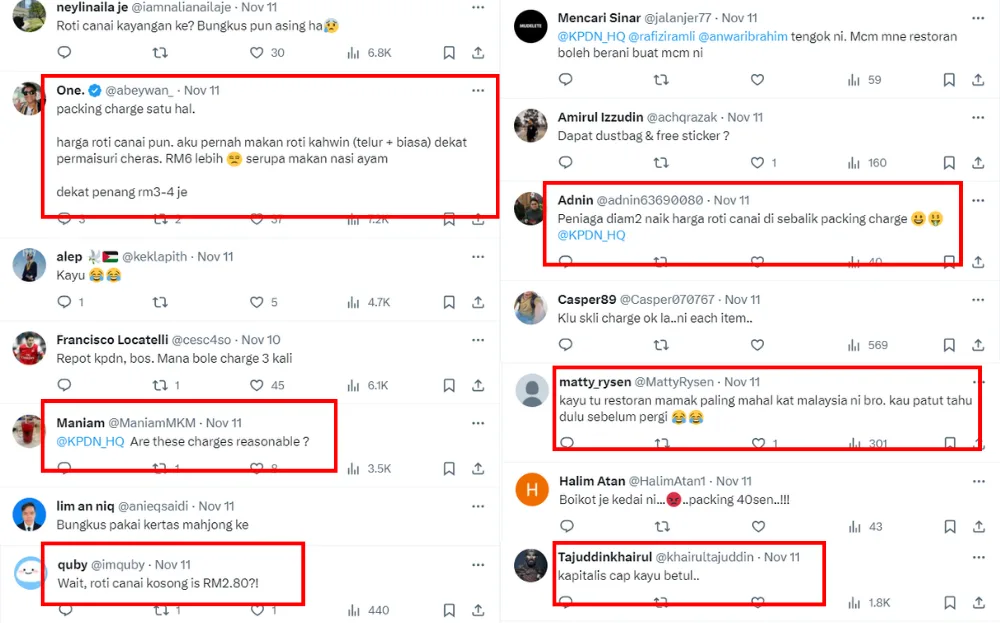 After the video went viral, many netizens shared their reaction to the total bill, mostly in shock over the high cost of each piece of roti canai and the 40-cent packing fee. Several netizens did say the prices are, unfortunately, “normal” for the chain restaurant. However, some netizens did tag the Ministry of Domestic Trade and Costs of Living (KPDN) to ask if such prices are reasonable.