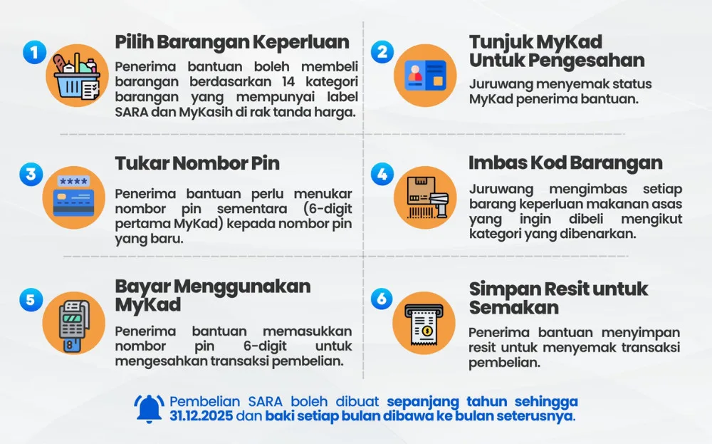 Fumbling on how to monitor your balance and where the RM100 SARA can be used? Not to worry! The government urges all eligible citizens to download the MyKasih app, where you can track your balance and all nearest participating SARA stores or simply visit their website at mykasih.com.my. The RM100 SARA will also be available to use throughout the year from 31st August 2025 to 31st December 2025.