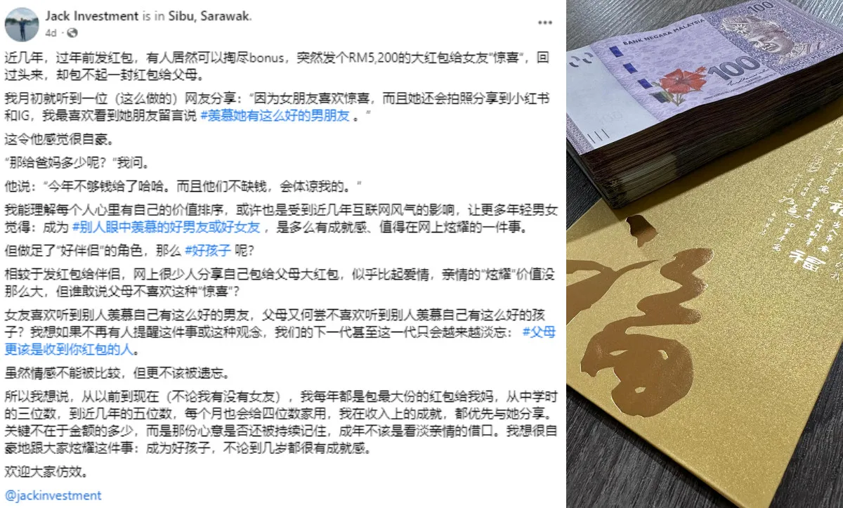 However, the Facebook user stumped the netizen with his next question: “How much will you give your parents?” His response of “I don’t have enough money this year,” left Jack completely unimpressed. The netizen was quick to claim that his parents “weren’t short of money“. “So, they will understand,” he added. But Jack felt as though the young man had his priorities mixed up!