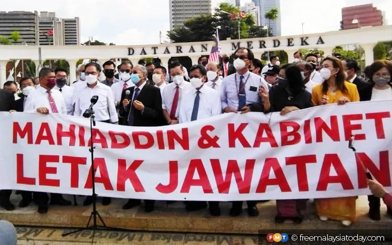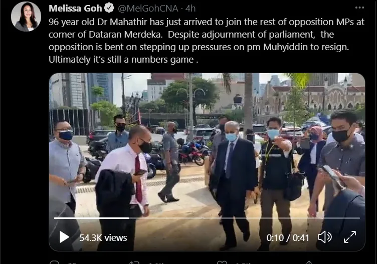 The coalition of MPs comprising of those from Parti Keadilan Rakyat (PKR), Parti Amanah Negara (AMANAH), Parti Tindakan Demokratik (DAP), Pertubuhan Kinabalu Progresi Bersatu (UPKO), Parti Ikatan Demokratik Malaysia (MUDA) dan Parti Sarawak Bersatu (PBS), gathered in the very place that our Father of Independence, Tunku Abdul Rahman Putra al-Haj proclaimed the nation’s independence. Melissa Goh, the Malaysia Bureau Chief for Channel News Asia had reported that 96-year-old Tun Dr Mahathir Mohamed participated in the protest too, at the said location.