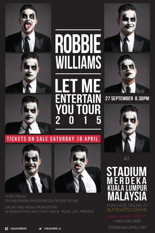 Robbie Williams has cancelled the Malaysian leg of his “Let Me Entertain You” tour on September 27th at Stadium Merdeka. In fact, the “Angels” singer has cancelled all scheduled show dates on the South-East Asian Leg of his tour. A release from concert organisers Galaxy Group (Malaysia) and Midas Promotions (Singapore) states that the cancellation is due to issues outside of the artiste’s control.