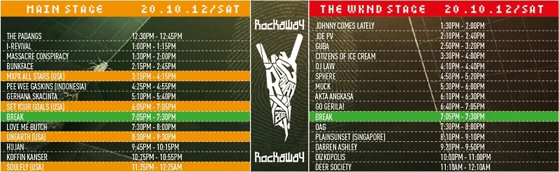 And of course, the time slots for the bands that are scheduled to play so you won’t miss out on any of them: