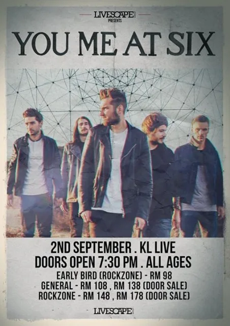 British rock band You Me at Six will be making their way to Malaysia this September! The band, made up of members Josh Franceschi, Max Helyer, Matt Barnes, Chris Miller and Dan Flint from Weybridge, Surrey, England were formed in 2004 and rose to fame with their debut album, “Take Off Your Colours”.