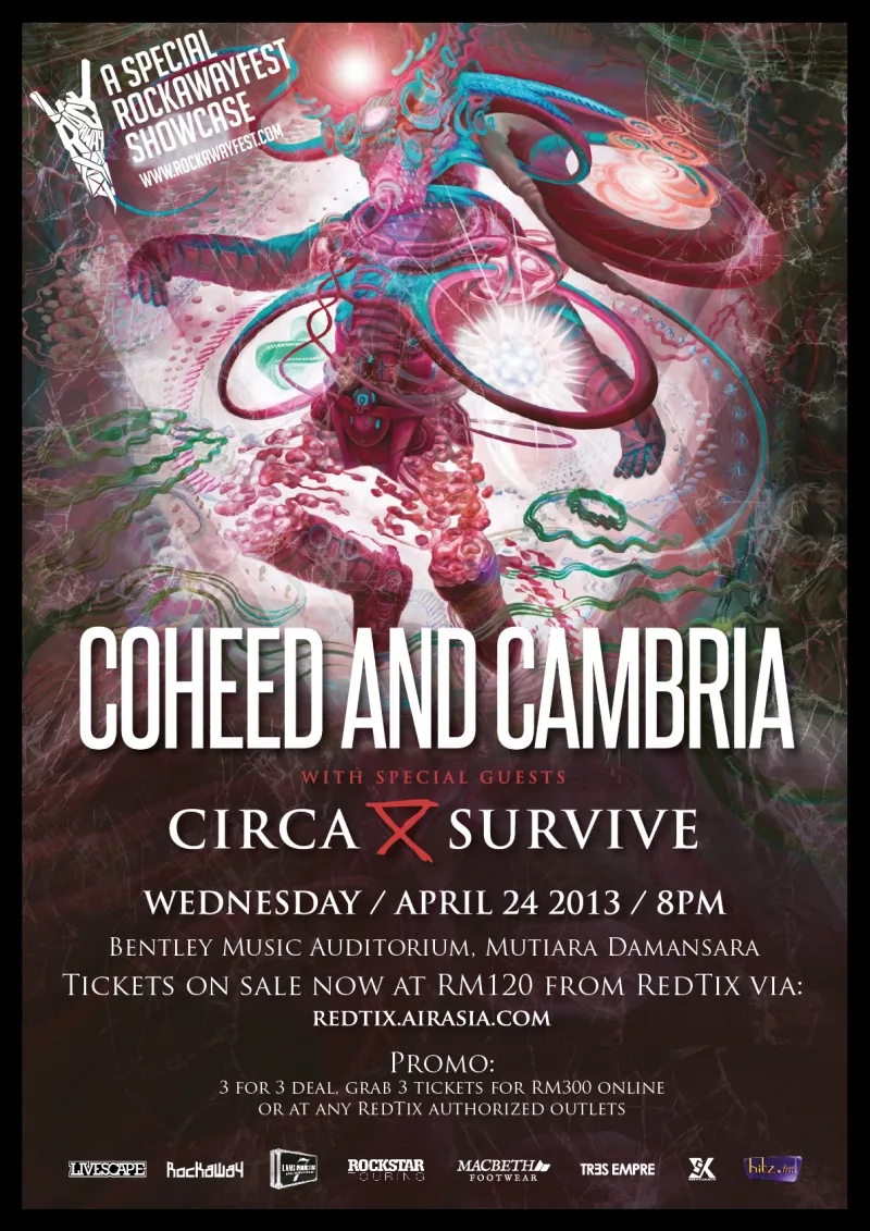 With a week to go to the first Rockawayfest Showcase of 2013, Livescape announces the change of concert venue. The special showcase featuring American bands, Coheed and Cambria with special guests Circa Survive will now move from KL Live to Bentley Music Auditorium.