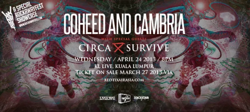 Livescape is pleased to announce their first collaboration with LAMC Productions for the upcoming Rockawayfest Showcase. Get ready for LAMC and Livescape’s first event together; Rockawayfest Showcase presents Coheed and Cambria with special guests Circa Survive on the 24th of April at KL Live.