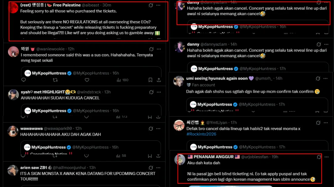 As expected, the announcement left many fans disappointed, as they had been looking forward to seeing the acts perform live on stage. Some criticised the festival’s marketing strategy, pointing to the high ticket prices despite the full line-up not being announced, and likened the experience to purchasing a “blind box”. Others speculated that the event may have been cancelled due to its overly ambitious scale. There were also fans who said the cancellation was not entirely surprising, noting that few would be willing to take the risk of buying tickets without knowing the complete line-up.