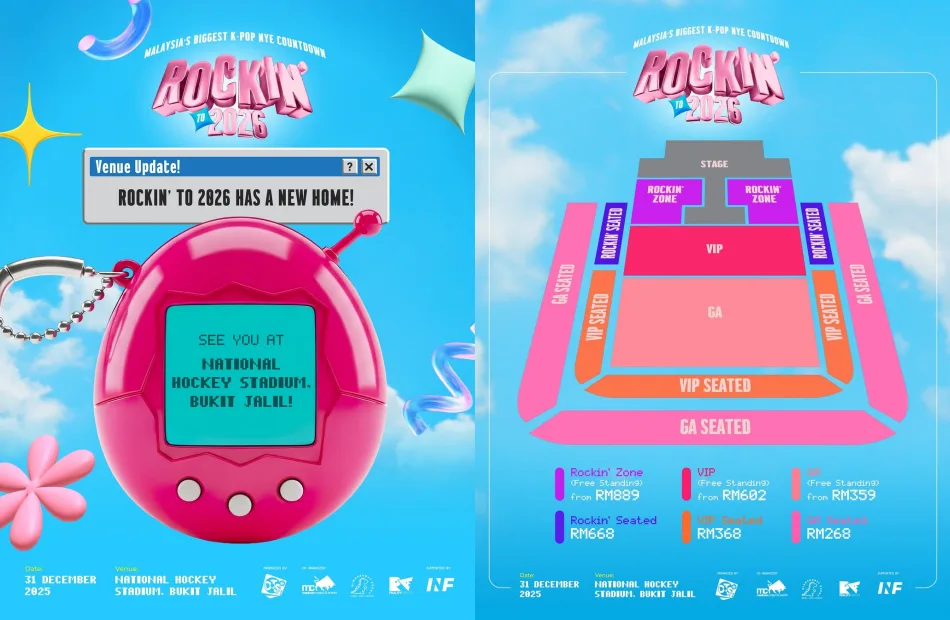 - Ticketing: RM889.20 (Rockin’ Zone – Standing), RM668 (Rockin’ Zone – Seated), RM602 (VIP), RM368 (VIP – Seated), RM359 (GA), RM268 (GA – Seated)