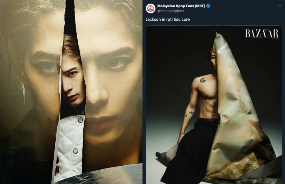 The image showed the shirtless singer on his knees posing next to a large piece of shredded paper. Reposted by @/msiakpopfans on Twitter, the photo was captioned, “Jackson in Roti Tisu core”. Since then, local fans could not unsee the resemblance. Many joked that the large prop does indeed look like the famous Roti Tisu dish while others suggested that it must’ve been the GOT7 member’s idea since he’s known to hang out at Mamak restaurants every time he visits the country.