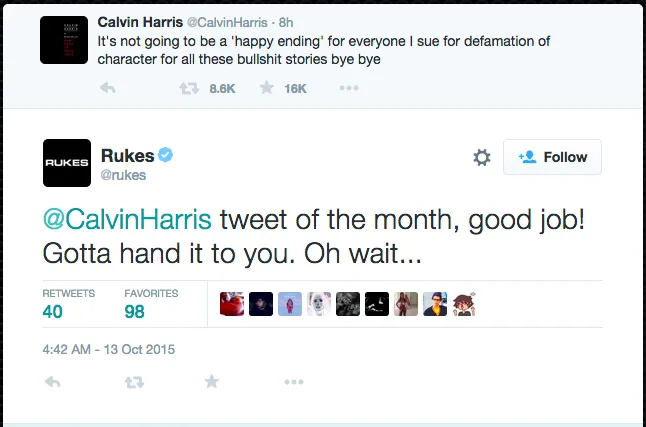 A couple of hours ago, Calvin took to Twitter to respond to the outrageous story, claiming them to be defamation and threatening to sue whoever who was responsible.