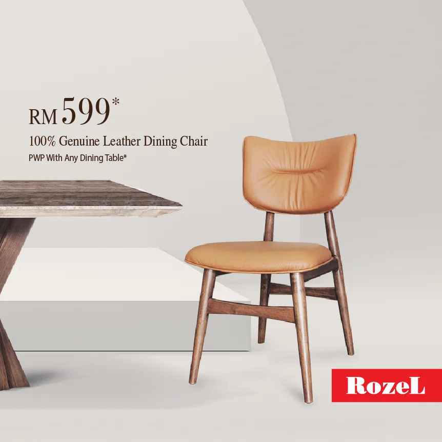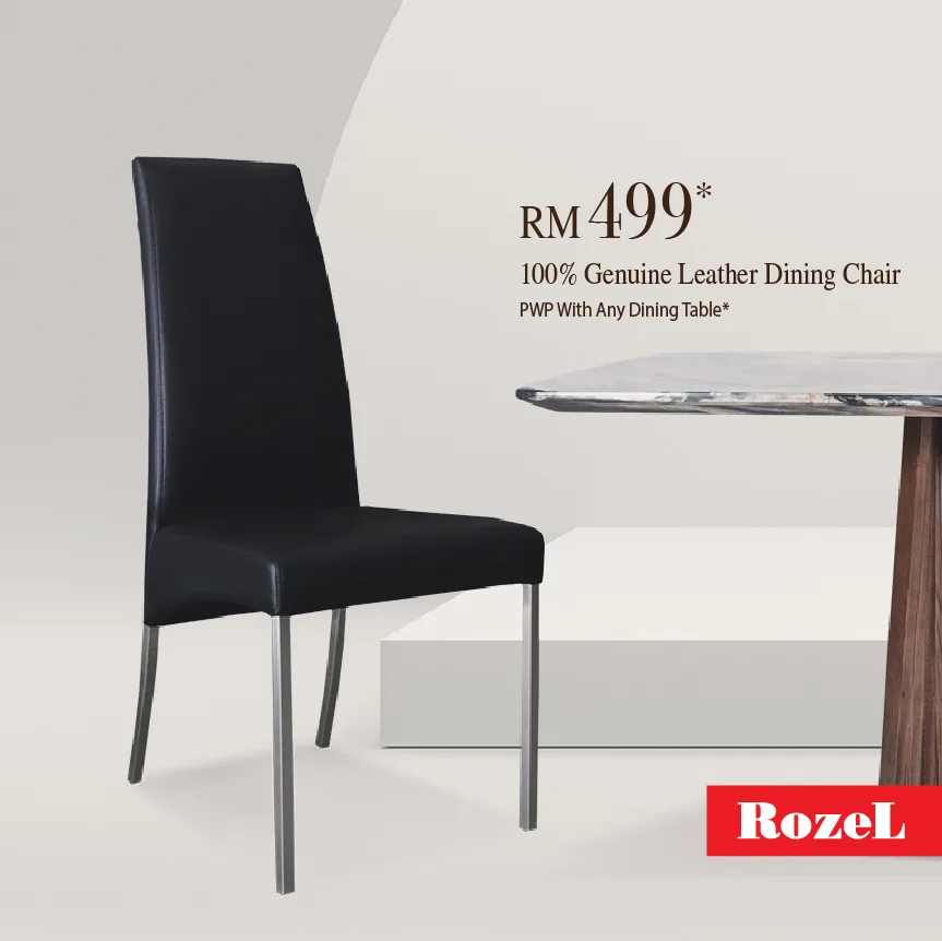 From 5th February until 13th March, customers will be able to buy branded, high quality dining chairs for as low as RM299 with a purchase of a dining room table! Now, you won’t need to eat your dinner on a chair that hurts. Instead, you can invest in Rozel’s 100% genuine leather dining chairs without having to break the bank in the process.