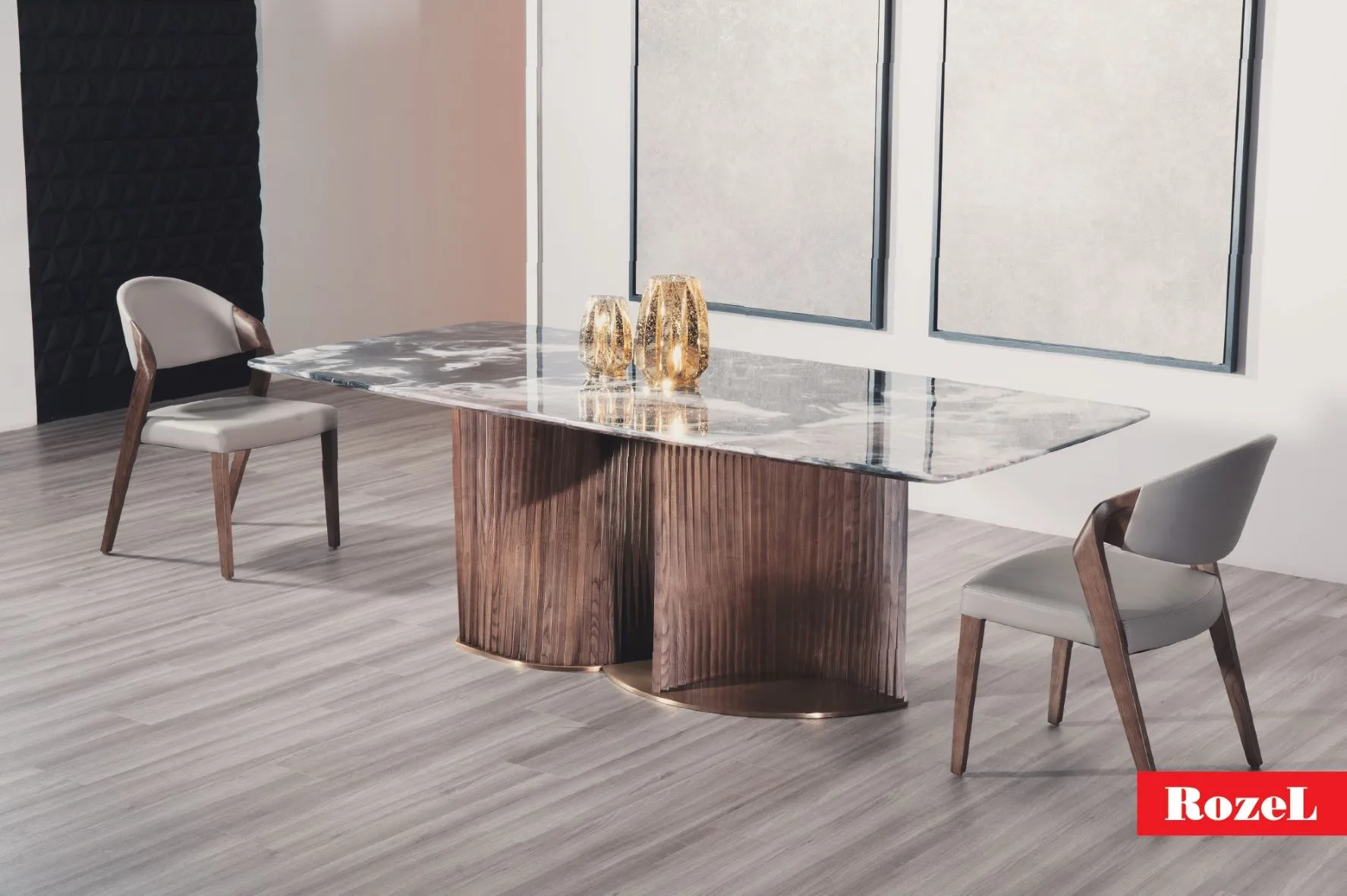 If you’re going for a more rustic, yet modern vibe, Rozel’s khayu dining table collection is one that will satiate your aesthetic needs! Their blend of elegant wooden elements and classic, marble table tops brings an air of sophistication into anyone’s home.