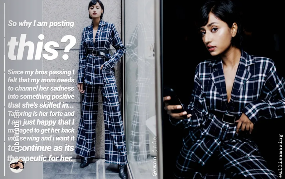 “So why am I posting this?” she added in the following IG story. “Since my bro’s passing, I feel that my mum needs to channel her sadness into something positive that she’s skilled in… Tailoring is her forte and I am just happy that I managed to get her back into sewing and I want it to continue as it’s therapeutic for her.”