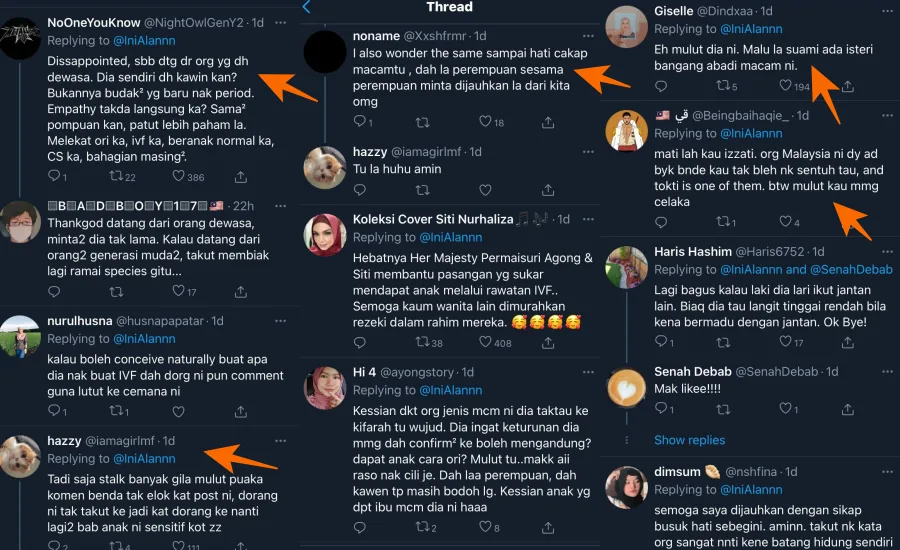 In the photo posted by Twitter user @IniAlannn, a Facebook user known as Nur Izzati left a pretty rude comment that read, “Try the original (procedure), TokTi, there’s no need to do IVF. If you’re already pregnant, congrats. Last time, you also conceived Aafiyah through IVF, right?”