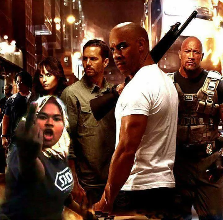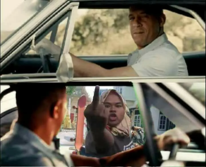 Perhaps inspired by the drama from the “Fast and Furious” films, the woman’s scary expression has been photoshopped into a series of movie posters (including the recently-released “The Fate of the Furious”). Even Hollywood actor Vin Diesel was not spared. Lol 😉