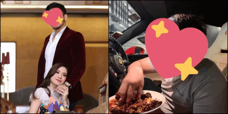 The “Hello, Mr. Perfect!” actress posted a picture of Elf – or Mr. E in short – feeding her with a plate of nasi kandar inside his car which netizens believed is a Ferrari.