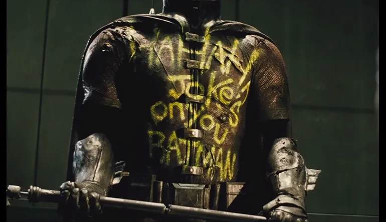It’s no secret that Robin will be part of DC Cinematic Universe as the latest Comic-Con trailer for Warner Bros.‘ “Batman v Superman: Dawn of Justice” showed his costume hanging in the Batcave. At first glance, it looks like a Bat suit. But upon closer inspection, it appears to be Robin’s suit with a message from The Joker graffitied over it. It is almost likely that he had already been killed by The Joker in the movie as fans spotted 2 bullet holes on the costume, one near the chest and the other on the shoulder.