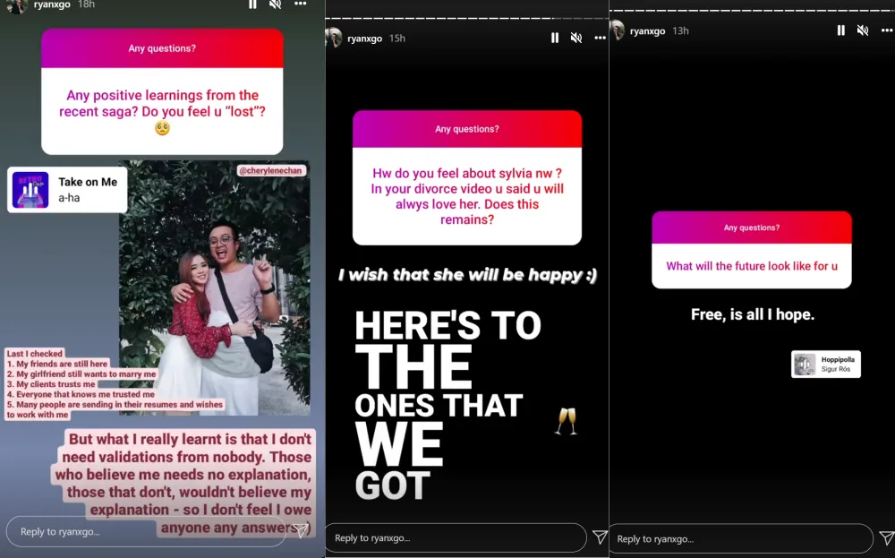 The whole NOC saga had more or less turned into a Ryan Tan vs Sylvia Chan war, with the former flames airing their dirty laundry for the public to witness. When someone asked if he felt he had “lost” or if there were some good take away, he replied that this experience has taught him that he doesn’t need any validations from nobody. He added that, “my friends are still here”, “my girlfriend still wants to marry me”, “clients still trust me”, and people are still keen on working with him.