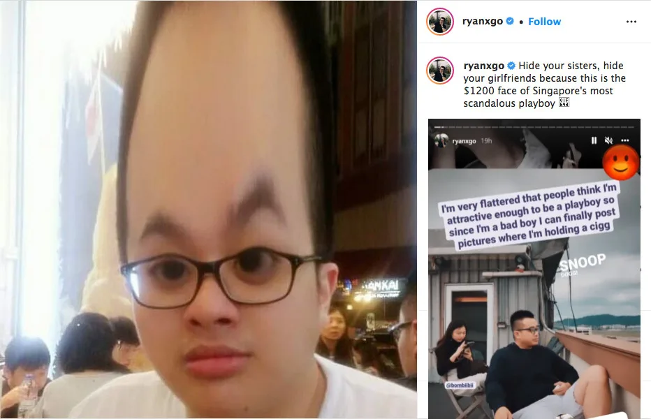“Hide your sisters, hide your girlfriends because this is the $1200 face of Singapore’s most scandalous playboy,” the 33-year-old captioned his photoshop image. This was in reference to the exclusive interview Sylvia Chan did with influencer Xiaxue.