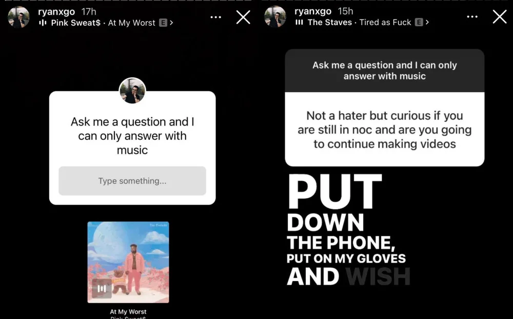 Of course, curious minds also wanted to know about the latest update on NOC. When a follower asked if he was still in NOC and will continue churning out videos for the channel, Ryan replied with the song “Tired As F**k” from The Staves. The lyrics goes, “Oh, I’m tired and stuck. Oh, I’m tired as f**k. Put down the phone, put on my gloves and wish me luck.”
