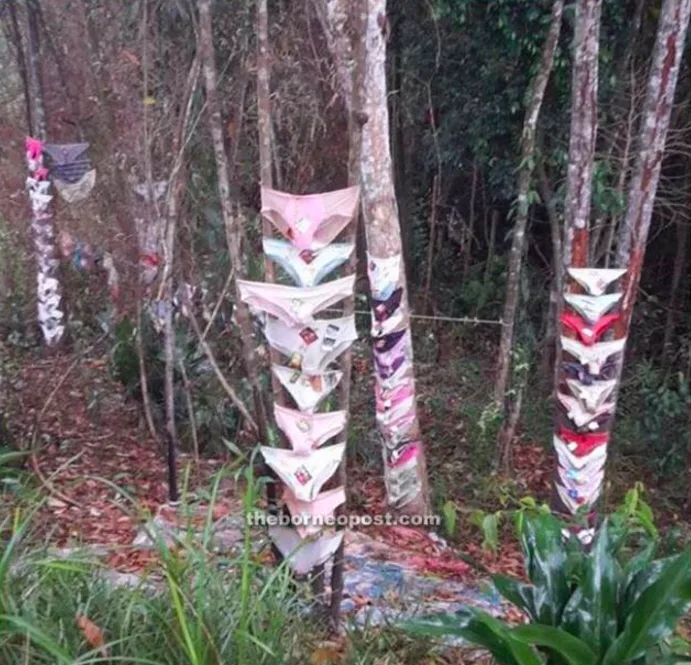 The Star Online quoted Penampang district officer Luvita Koisun as saying, “They saw the panties but could not find anyone there and even those living nearby seemed to have no clue about them,” adding that she herself had not seen the assorted underwear neatly strung up amongst the trees.