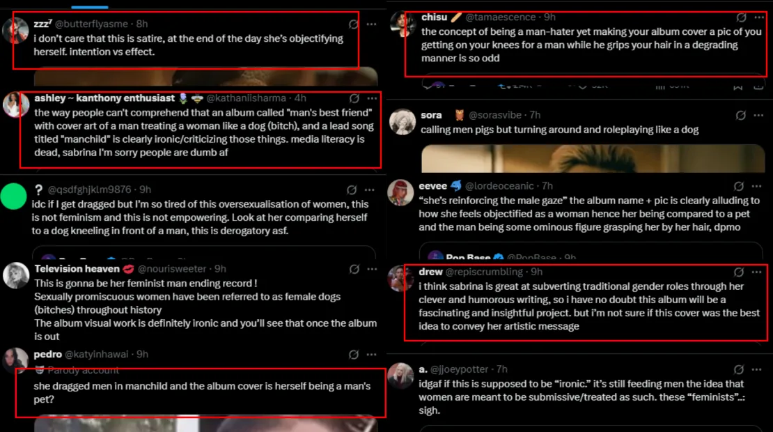 Although comments on Instagram have been mostly positive as fans expressed excitement for new music, those on Twitter, however, had different opinions about the album cover. As seen in the screenshots below, many described the artwork as off-putting, criticising it for portraying her, or women in general, as subservient to men, likening the imagery to that of a pet dog.