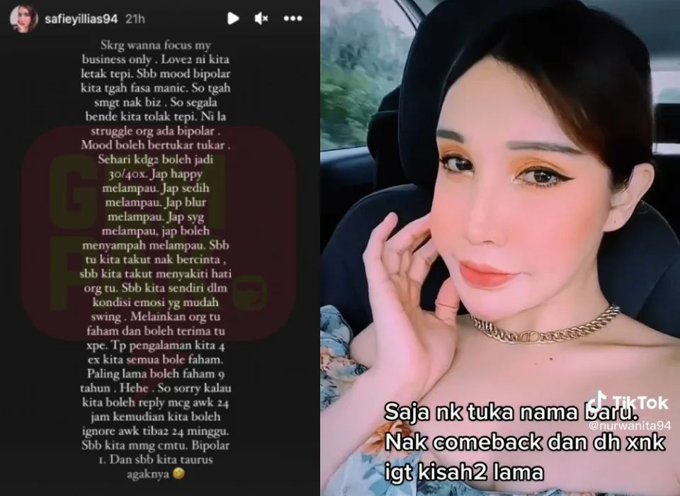 When it comes to relationships, the “Apa Salah Syinta” singer revealed that she currently wants to focus more on herself and her business. “I will put (love) aside first. Because of my bipolar mood (disorder), I’m currently experiencing a manic state. So, I’m eager to get back on track with my business. This is the struggle that people with bipolar disorder go through. We often have mood swings. That’s why I’m wary of looking for love at the moment, I’m afraid of hurting another person’s feelings,” Safiey also wrote on her IG Story.