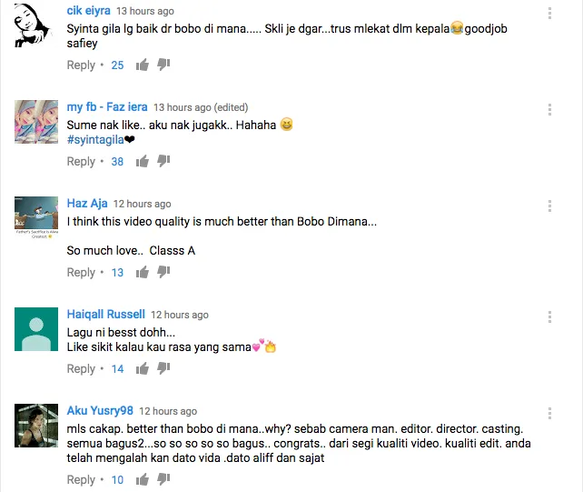 Again, people are saying that the song and music video for “Syinta Gila” are definitely way better than the previously controversial hit “Bobo Di Mana” performed by Dato Aliff Syukri, Nur Sajat and Lucinta Luna.