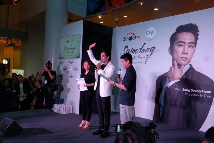 And as one would expect, as soon as it was time for Song Seung Heon to take the stage, the decibel levels were through the roof! After greeting his fans, a crowd-pleaser through and through, the actor wasted no time in expressing his desire to eat local Singaporean food i.e. Chilli Crab.