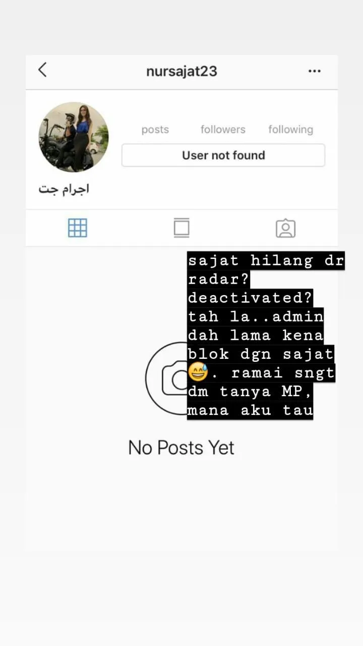 Gossip account Makcik Puaka has noted that the Instagram account with the handle @nursajat23 is gone.