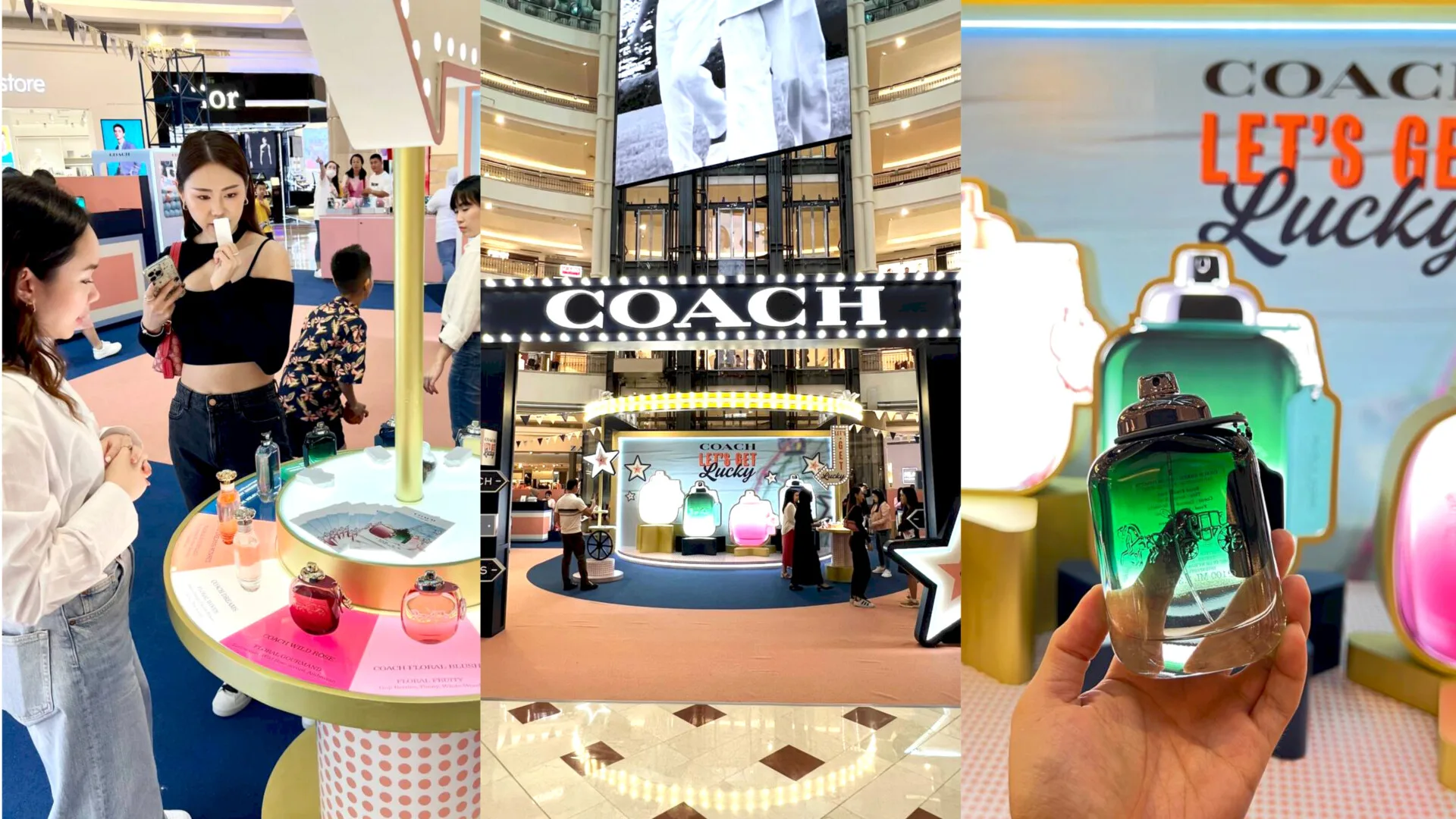 In conjunction with Coach Green’s debut, the fashion house launched the “Let’s Get Lucky” roadshow, with a carnival-inspired theme, at Suria KLCC’s Centre Court. We were there and were able to explore Coach’s Fragrance collection, as well as take part in mini-games, and enjoy special treats such as popcorn and cotton candy. Check out what happened below: