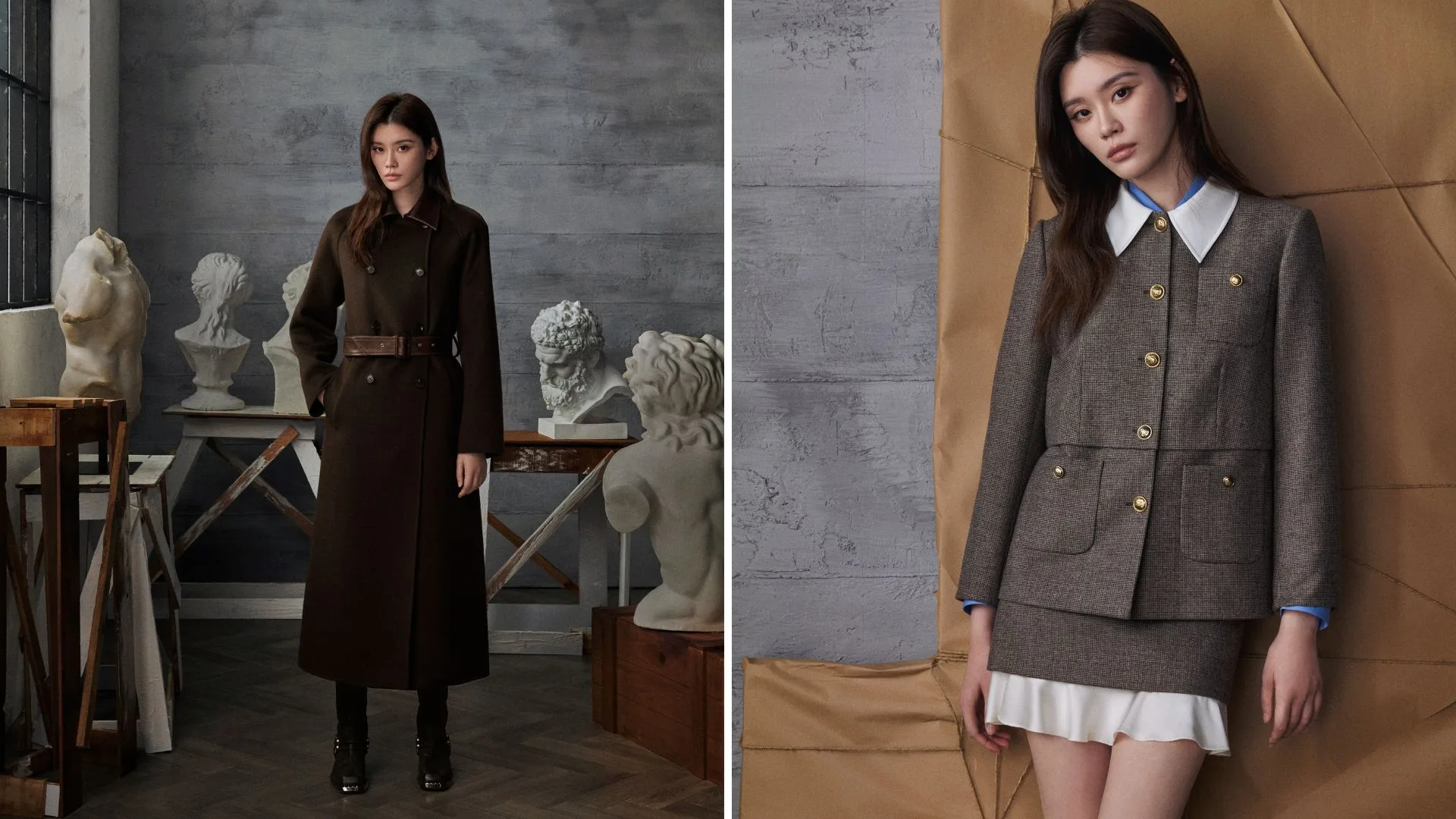 Highlights include suede and distressed leather outerwear, sculptural wool coats, and refined accessories like the suede and leather TANGOSO bag. Standout pieces such as the long distressed leather jacket (RM4,250), short bubble skirt (RM1,390), and contrast collar tweed jacket (RM2,390) bring versatility and French flair into everyday wear.