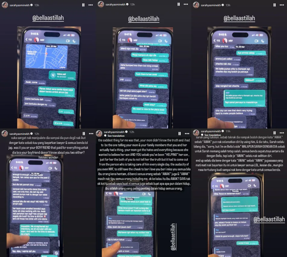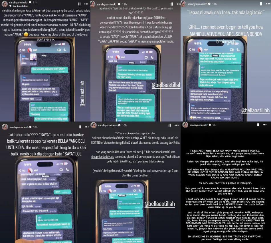 In a few of the IG stories posted, Sarah Yasmine called Ruhainies of being manipulative for convincing the Singaporean singer that he’d have a better life with her and the fact that she was even willing to pay for the lawyers. Apart from that, the public figure also accused rapper Caprice of being aware of the two celebs’ relationship all this time, yet still working together with them to slander Bella.