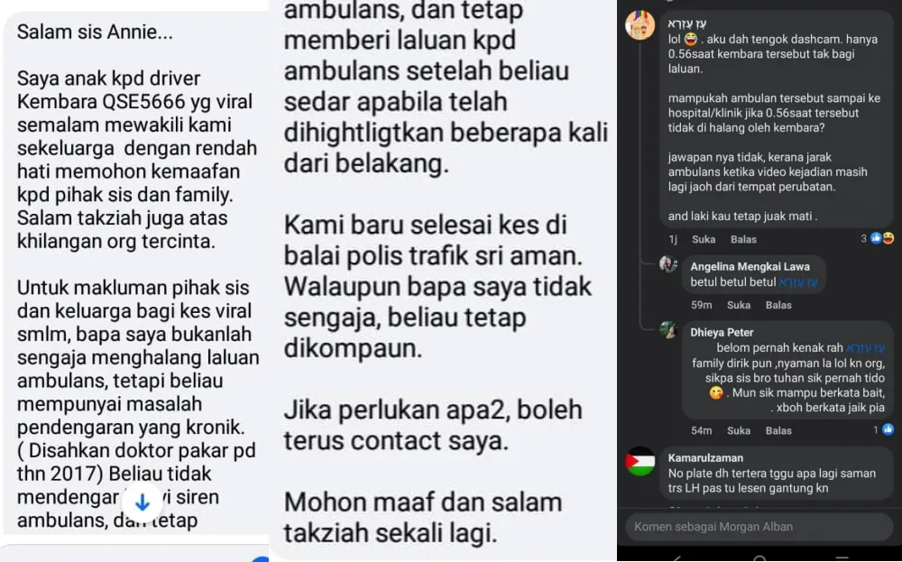 She also addressed a comment which argued that the car had only blocked the ambulance for 0.56 seconds. The comment had claimed the time in which the ambulance was blocked was negligible as it would not have reached the hospital/clinic in time as “the ambulance was still far from any medical facility at the time of the incident” and that the husband “would still have died“.