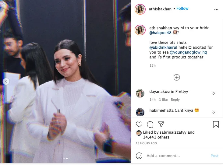 The younger sibling to local celebrity Neelofa became the talk of the town this week after she posted a photo of her looking effortlessly stunning in an all-white ensemble. The spotlight, though, is on her caption which reads, “Say hi to your bride @haiqool48.”