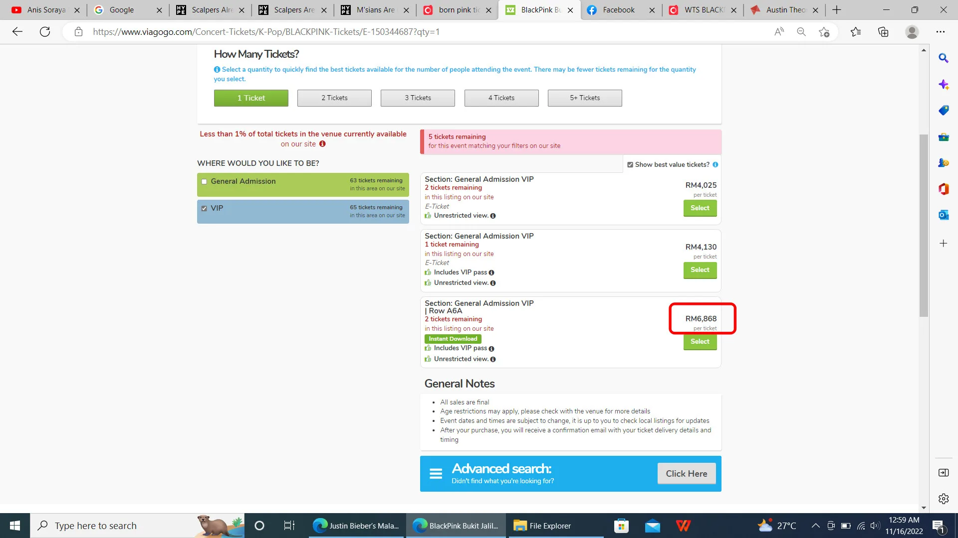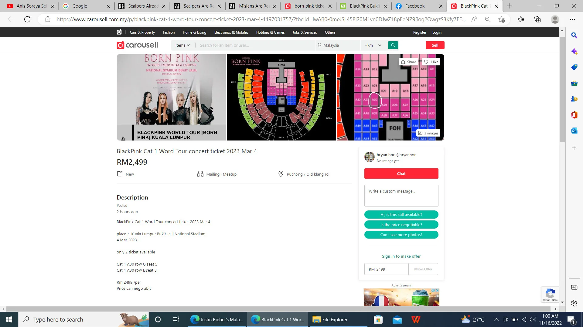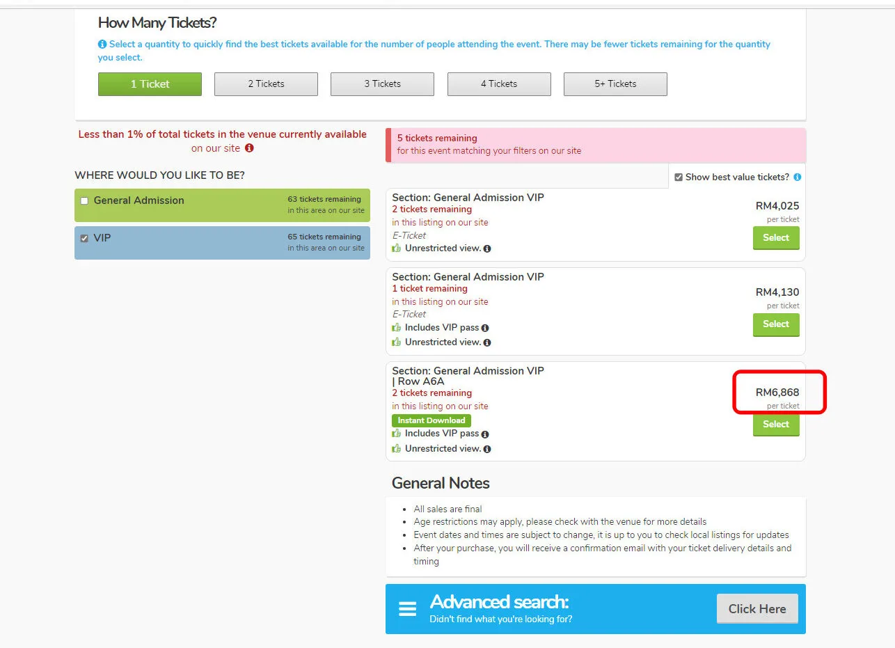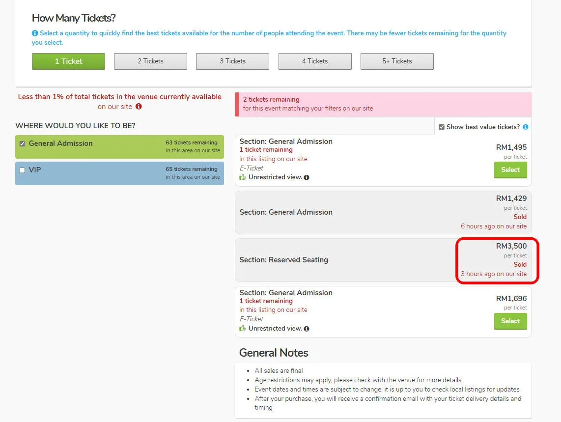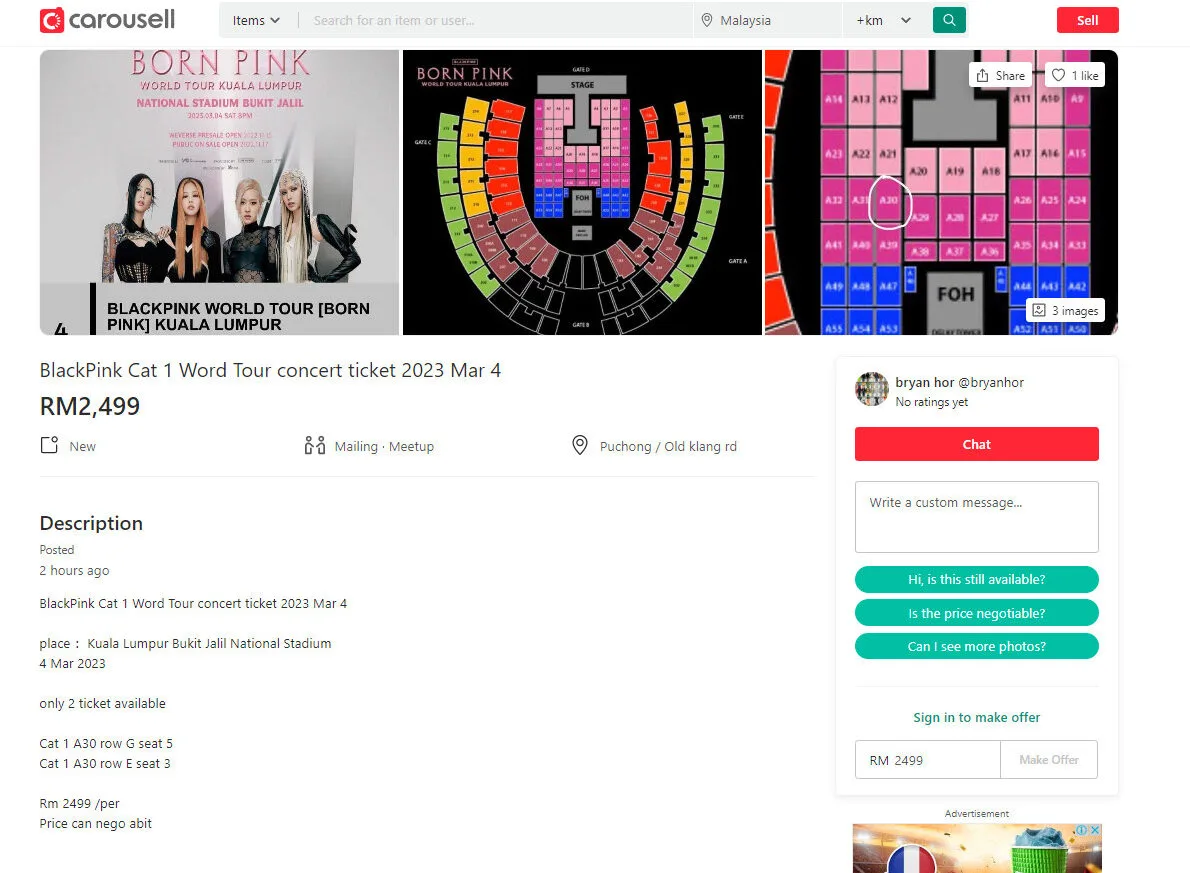 As seen in the photo shared by the netizen, tickets for the VIP seats, which are priced at a whopping RM1,888, were all quickly snapped up by Malaysians. However, while some fans were sadly unable to obtain the tickets, scalpers have already begun reselling them on other platforms. Most of them have already taken to sites such as Viagogo and Carousell to resell their purchased tickets at a higher price.