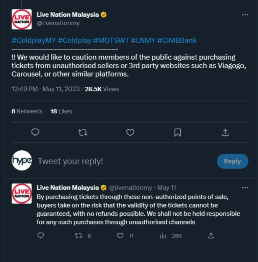 As one may have already anticipated, when there’s a big upcoming concert in Malaysia, there will always be scalpers. Yesterday (Tuesday, 16th May), Coldplay tickets were being sold quicker before you can even refresh the page to reserve a seat.
