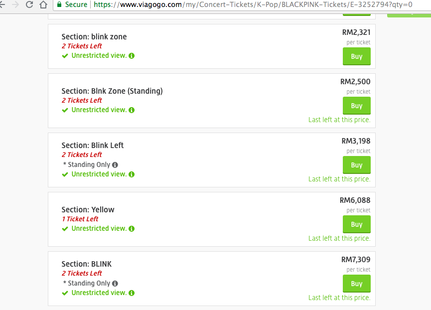 The most expansive zone – BLINK Zone – which only costs RM693 per ticket is being resold for more than RM3000 on StubHub Malaysia. If you think that’s insane, someone on Viagogo Malaysia is selling their BLINK Zone tickets for more than RM7000!