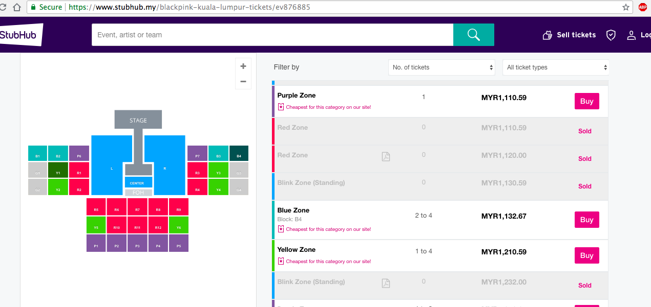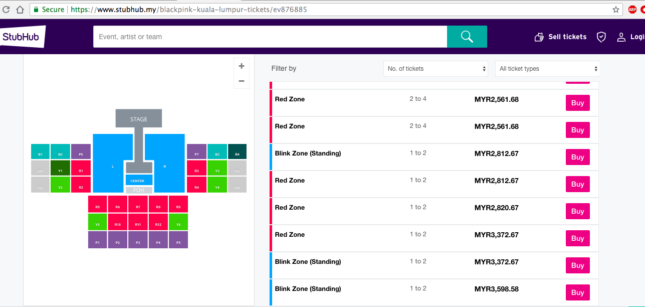 As expected, scalpers are at it again. A quick look at StubHub and Viagogo show that tickets are being resold at outrageous prices. For example, tickets for Red Zone (which cost RM 673) have already been bought even though they were resold for more than RM1000 each!