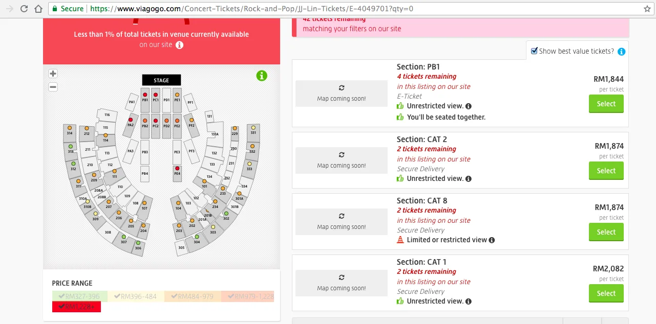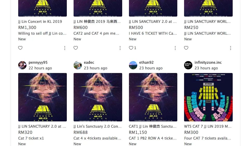 Although there are still plenty of tickets up for grabs, scalpers have already taken to sites such as Viagogo and Carousell to resell their purchased tickets at a higher price. The most outrageous price we saw on Viagogo was a netizen reselling Cat 1 ticket (RM888) for RM2082. Meanwhile, there are those on Carousell reselling 1 pair of Cat 4 tickets (RM488 x 2) for RM1300.