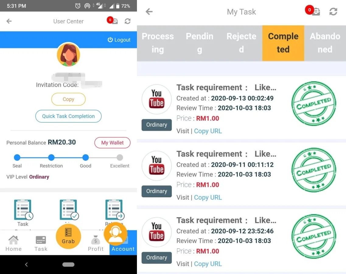For context, “iShareFans” requires users to carry out tasks on social media (TikTok, Instagram, etc.), such as liking pages and following accounts, which is supposed to earn them RM1 per task. Free users are capped at a maximum of 3 tasks per day, meaning RM90 per month if they managed to complete it everyday.