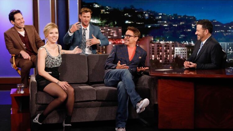 Kimmel told the cast that this could be the last gathering of Avengers on the show, to which Downey replied, “Well, the future is very uncertain.” ScarJo then leaned in and said “Don’t lie to him, we’re not ever…we’re never coming back.” She then laughed, passing the comment off as a joke.