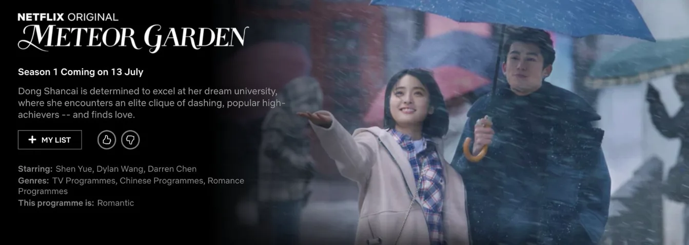Good news guys! “Meteor Garden” 2018 will be premiering on Netflix Asia on 13th July (Friday). The first 6 episodes will be made available during the debut at 7am PTS / 10pm SGT. 6 additional episodes will be added to the streaming service every Fridays afterwards.