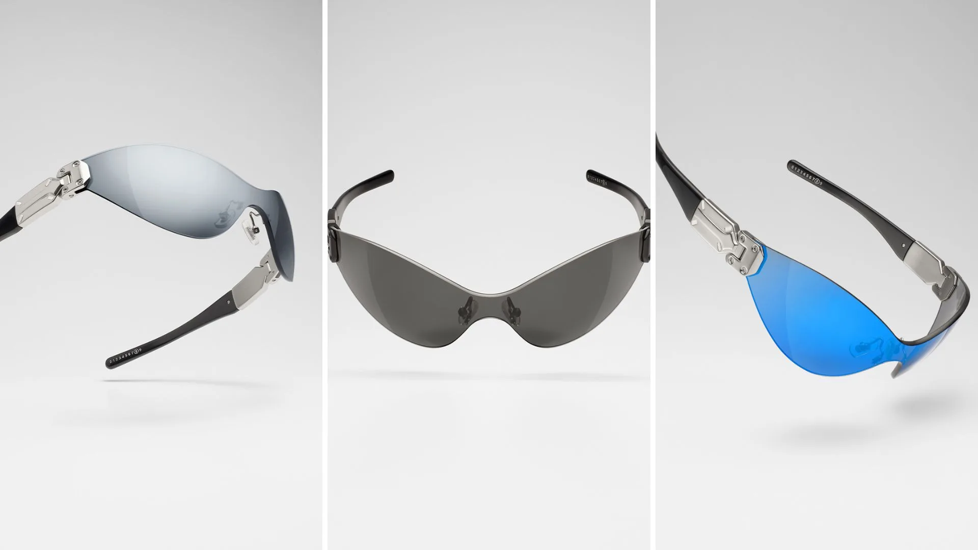 The templeless MM101 and MM102 are exclusively presented in silver Glam Slam eyewear cases, whereas other frames are presented in white Glam Slam eyewear cases.