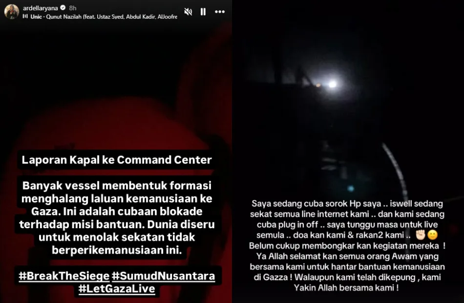 MalayMail reported that Zizi Kirana had also been detained by Israeli forces. Before losing contact, the singer penned an emotional message to her family back home. “Should anything happen to me, [Nurul] will take my place as the eldest. Kakak Ela, thank you for the love we’ve shared since childhood. We never argued, and the thought of being apart – even for a brief moment – would bring us to tears. Please look after our mother and siblings, shower them with boundless love. May Allah always protect you all. I love you, Kakak Ela”.
